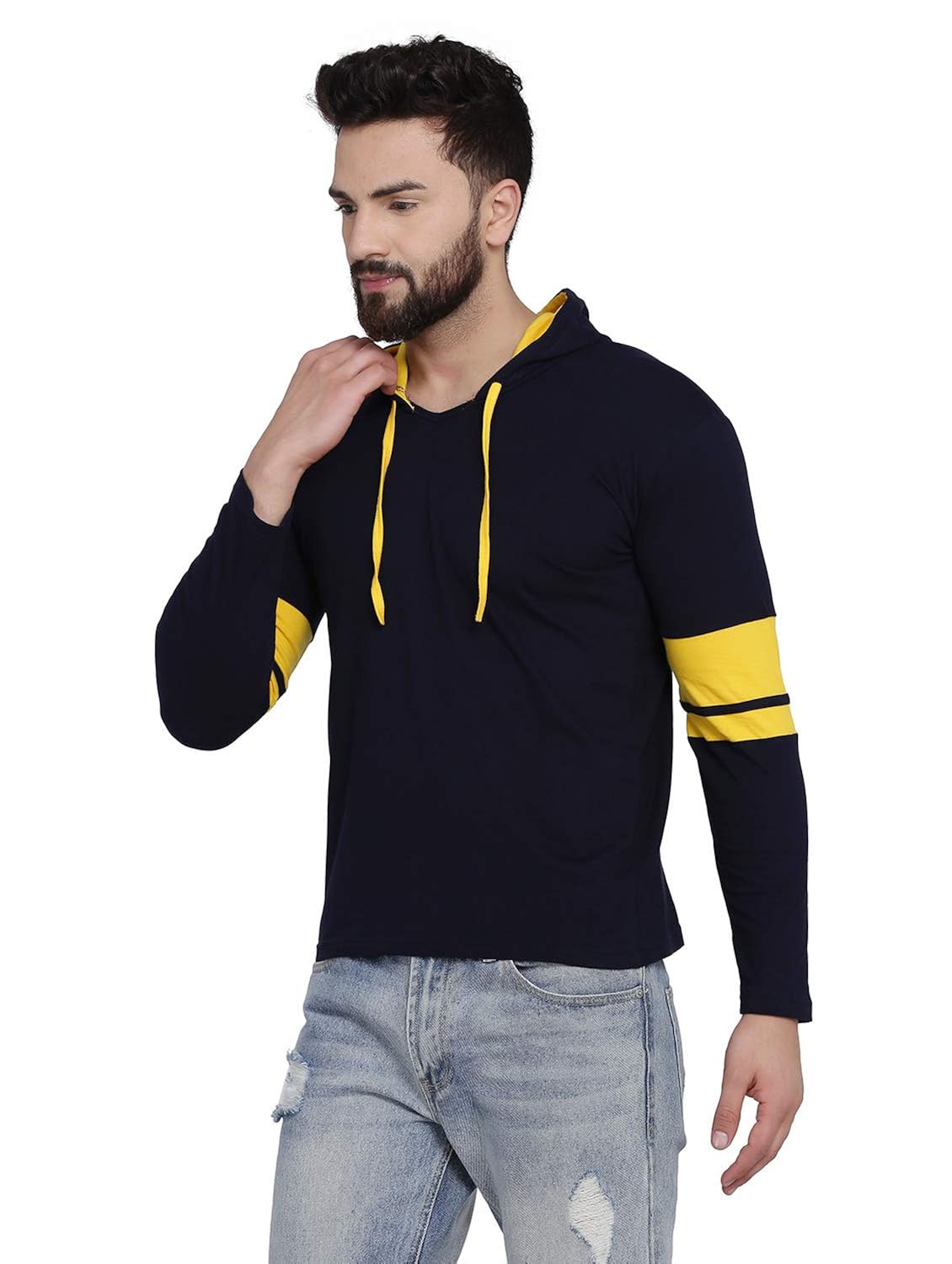 YLX Men's Cotton Casual T-Shirt with Hoodie Blue Contrast(3011)
